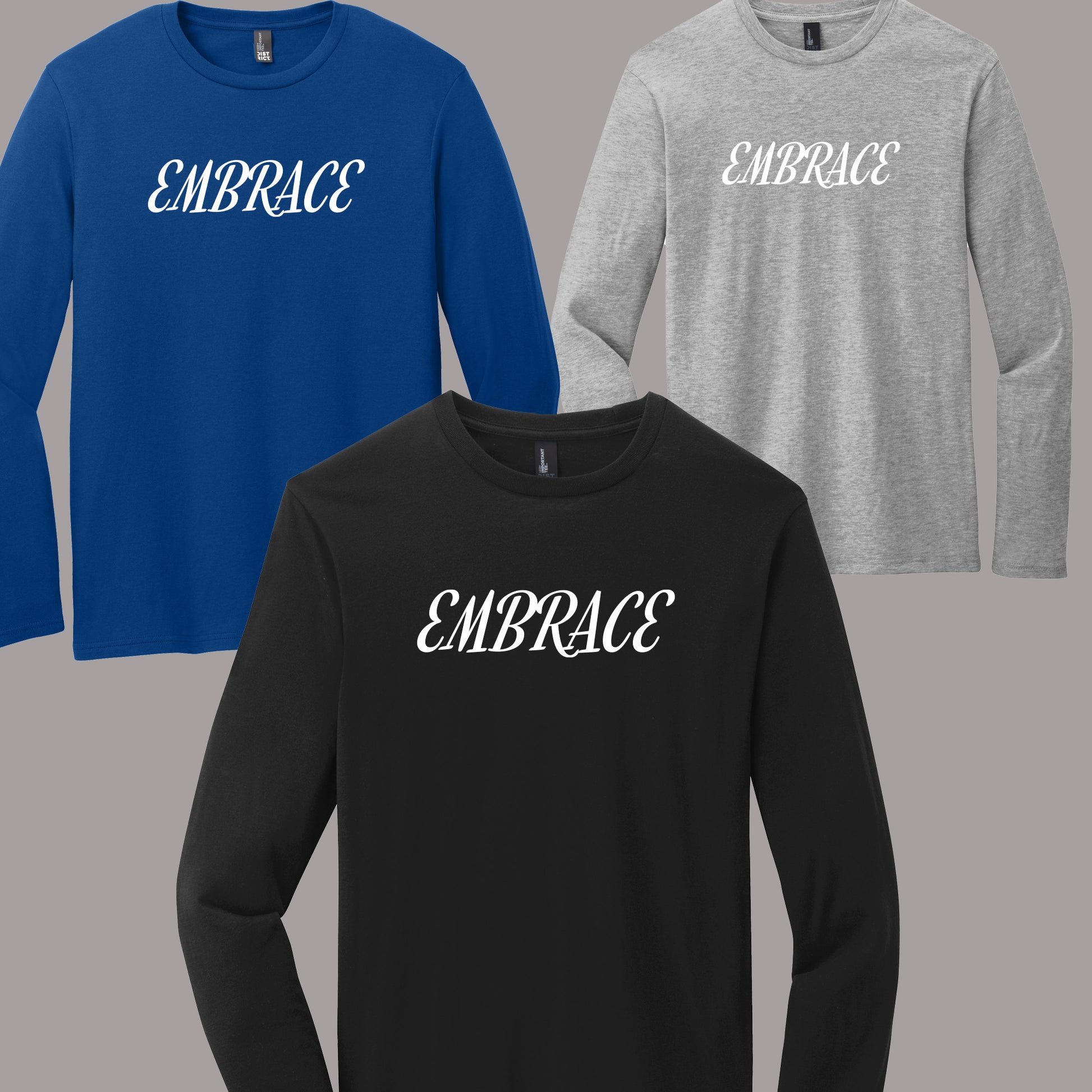 The 2025 Embrace gear returns bolder than ever. This season brings fresh colorways—black, royal blue, and grey—in the same ultra-comfortable crewneck cut that earned your loyalty last year. Ready to push further? We've expanded the collection with matching ring spun t-shirts in both short and long sleeve options, all available in the same striking colors.
